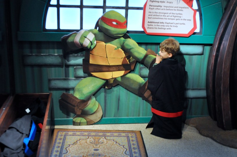 A heads up to parents who grew up in the 80s and 90s: these are not YOUR Ninja Turtles. If you go there expecting the turtles from the original movies or cartoon, then you will be massively disappointed. That being said, don’t let that deter you from going to see it. While the exhibit is visually the newest incarnation of the turtles, it also provides visitors with the history of the turtles, which is something that those who grew up with them will really enjoy.
