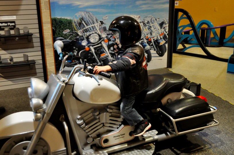 We recently took a trip to The Reading Public Museum to see their exhibit about Harley Davidson motorcycles. Now, I want to be clear that I am not a fan of motorcycles. As a doctor’s daughter, I was repeatedly told about the many horrors witnessed from motorcycle accidents, and as a result, have always avoided them at all costs. That being said, my father-in-law is actually an avid motorcycle enthusiast and collects them (I think he owns seven at the time of this blog entry). Of course, Harley is his brand of choice, so we decided to take him to the exhibit to check it out.